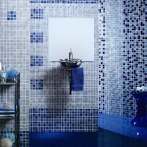 Colección de azulejos decorativos, con pequeños cuadrados multicolores, para alicatado y decoración de paredes en cocinas y baños del hogar
